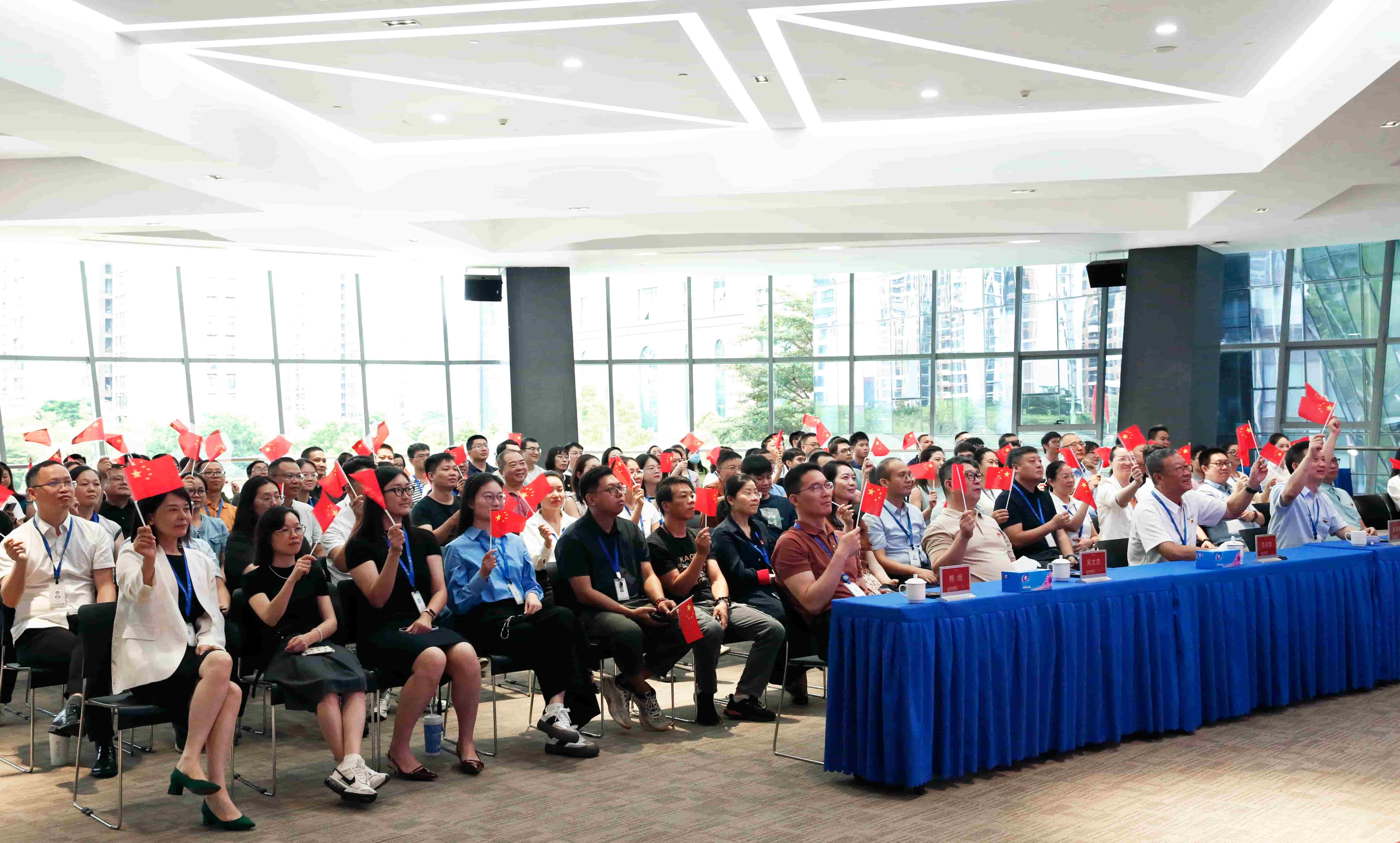 公司多功能會議室氣氛莊重而熱烈,背景屏幕上“銘記歷史、緬懷先烈、珍愛和平、開創(chuàng)未來”的標語格外醒目。上午9時整,莊嚴的國歌聲響起,全體員工自發(fā)肅立,澎湃的愛國激情在每個人心中涌動。