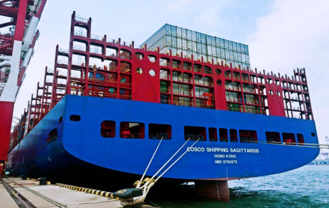 此次在前灣聯(lián)合集裝箱碼頭接用智光岸電系統(tǒng)的船舶,是由中國船舶工業(yè)集團所屬中遠(yuǎn)海運集裝箱運輸有限公司建造的20000TEU級超大型集裝箱船舶“中遠(yuǎn)海運人馬座輪”。該船總長399.8米,型寬58.6米,設(shè)計航速22.5海里/小時,最大載重量20萬噸。甲板面積接近4個標(biāo)準(zhǔn)足球場,是中遠(yuǎn)的20000標(biāo)廂星座級集裝箱船,排水量可超過兩條遼寧號艦空母艦。