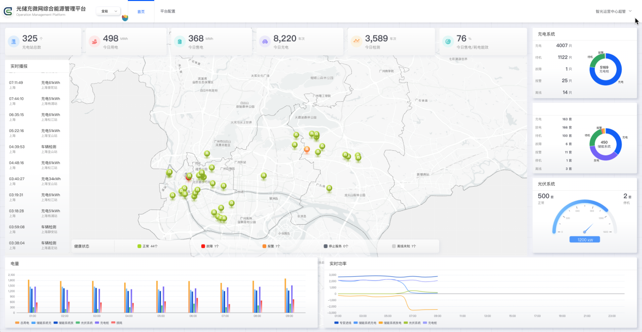 通過大數(shù)據(jù)、云計算、邊緣計算和AI技術(shù)開展設(shè)備的實時監(jiān)控,智能運維,光儲充系統(tǒng)綜合能量控制與優(yōu)化,參與電力市場交易,響應(yīng)電網(wǎng)輔助服務(wù)。通過充電過程數(shù)據(jù)分析為車主提供電池檢測服務(wù)。該平臺基于光伏、儲能、充電樁以及變壓器負(fù)荷檢測數(shù)字化物聯(lián)裝置為基礎(chǔ),可實現(xiàn)充電站微網(wǎng)能量控制獨立部署、運行。其主要功能包括運行管理、設(shè)備管理、能源大數(shù)據(jù)、能量管理等4個子功能模塊,分別從提高安全運行監(jiān)管效率、確保設(shè)備數(shù)據(jù)全面性、提高設(shè)備運行效率、優(yōu)化能量效率等方面為客戶創(chuàng)造價值。