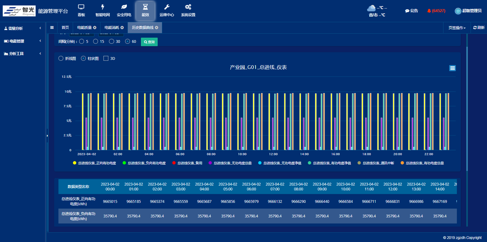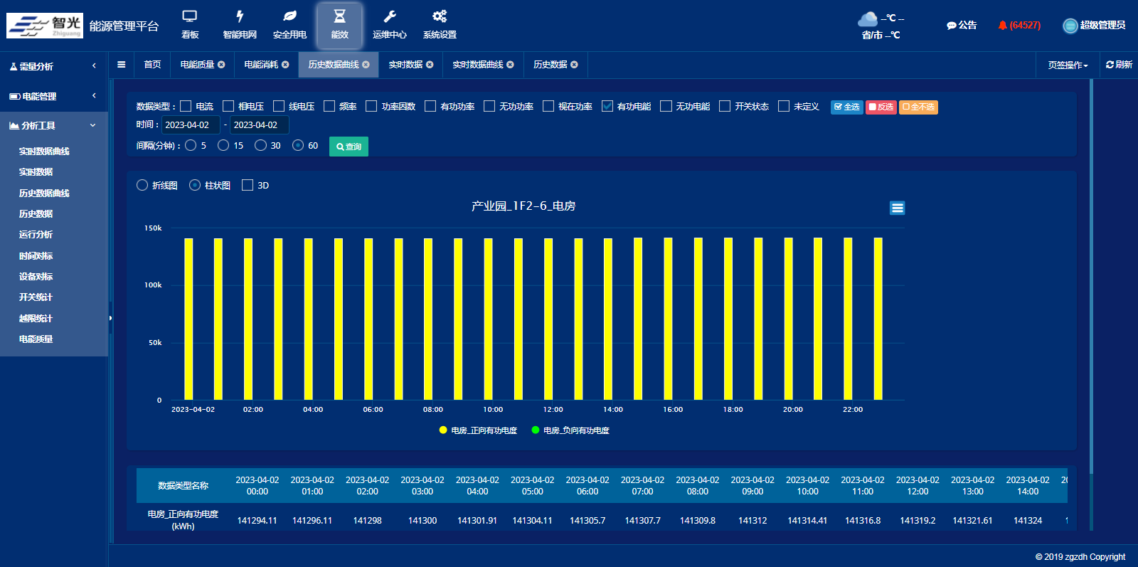 顯示監(jiān)控點(diǎn)不同時(shí)間段對(duì)比的能耗、流量、產(chǎn)量分析報(bào)告,從曲線和報(bào)表中可以清晰表達(dá)毎個(gè)監(jiān)控點(diǎn)或監(jiān)控區(qū)間的高耗能時(shí)間段和低耗能時(shí)間段。